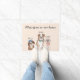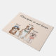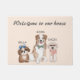 Cuidados cachorros con arcos y bandanas sobre un fondo beige. Una nota de bienvenida con una pata