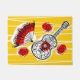 Diseño caprichoso de estilo retro con recuerdos de una fiesta española; guitarra de hierro forjado, ventilador de encaje y rosa roja. Un diseño de personalizable en blanco, negro, rojo y amarillo dorado para que puedas personalizar con tu propio texto, imágenes e ideas. Imagen original de arte digital.