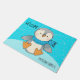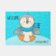 Ilustraciones dulces del pingüino. Fondo azul modelado. Estera de puerta agradable del personalizado con el texto ajustable. Opciones para los cambios en el apellido agradable del texto y. Plantilla rápida y fácil de utilizar.
