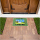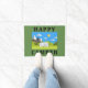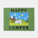 Doormat feliz el | del frente del motorhome de rv que acampa por la mini tienda de la familia de los hermanos