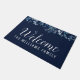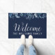 tipografía de bienvenida con nombre familiar y follaje azul acuarela. Puede editar los colores y el texto de esta alfombra