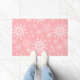 El doormat de vacaciones se muestra en un diseño de impresión de copos de nieve de invierno festivo.