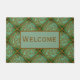 Bonito follaje doormat con verde y bronceado. Este diseño presenta un delicado diseño de hojas de arrastre. El fondo es verde y las hojas y los enredos son tostados. En el centro hay un rectángulo con Bienvenida. Puede cambiar el tipo de letra o cambiarlo para decir lo que desee. Este diseño de impresión viene de un patrón original de azulejos de la marca de baldosas de Oregón Fay Jones Day.