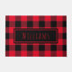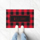 Bienvenido a su familia y amigos este otoño e invierno con este nombre personalizado de doormat en una rústica manta de búfalos rojos y negros. Personalízalo con el nombre de tu familia o una palabra de tu elección en un panel central con letras rojas modernas en negro con un borde rojo. Fantástico para todo el otoño, Navidades y temporadas de invierno. Diseñado por © Tim Coffey.