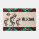 Personaliza este singular Doormat de Kokopelli, al suroeste de Kokopelli, "uno de los tipos"! Cuenta con tres Kokopelli que tocan la flauta y bailan bajo el sol en un fondo de piedra arenisca... ¡Rodeado por un borde suroeste en turquesa, Naranja y negro! Este es un diseño de arte original del artista Kerry Miller.