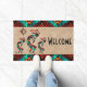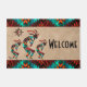 Personaliza este singular Doormat de Kokopelli, al suroeste de Kokopelli, "uno de los tipos"! Cuenta con tres Kokopelli que tocan la flauta y bailan bajo el sol en un fondo de piedra arenisca... ¡Rodeado por un borde suroeste en turquesa, Naranja y negro! Este es un diseño de arte original del artista Kerry Miller.