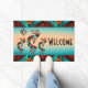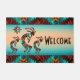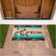 Personaliza este singular Doormat de Kokopelli, al suroeste de Kokopelli, "uno de los tipos"! Cuenta con tres Kokopelli que tocan la flauta y bailan bajo el sol en un fondo turquesa y Naranja de atardecer... ¡Rodeado por un borde suroeste en turquesa, Naranja y negro! Este es un diseño de arte original del artista Kerry Miller.