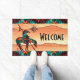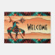 Personaliza este único "One of a Kind" Fin de la Trail Doormat! Cuenta con un final nativo americano del camino indio y caballo en un fondo del desierto... ¡Rodeado de fronteras turquesas, negras y Naranjas! Este es un Diseño de Arte Gráfico Original creado por el artista Kerry Miler.