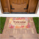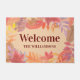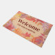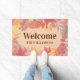 Este rústico Welcome Door Mat está decorado con un patrón de hojas de acuarela en tonos otoño y una tipografía de escritura elegante. Personalizable fácil. Acuarela original © Michele Davies.