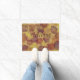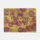Acogedora y acogedora felpule para la temporada de otoño, decorada con la palabra, bienvenido, con un fondo de hojas superpuestas en amarillos y marrones ricos.