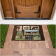 El doormat de collage muestra tu amor por el país con un burro, un hongo, un hermoso becerro, un viejo vagón y más.