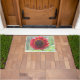 Este doormat tiene un oxidado girasol rojo para dar la bienvenida a sus huéspedes. Derechos reservados Marjorie Tietjen.