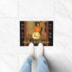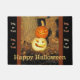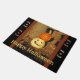Este felpudo de Halloween muestra dos calabazas sonrientes apiladas unas encima de otras y casi listas para caer. Con las palabras, "Feliz Halloween" y "Truco o Trate", este felpudo es una decoración perfecta para Halloween.