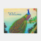 Diseño original de arte fino de un exótico pavo real azul indio por la artista Carolyn McFann de TPC Studio impreso en un personalizable, impermeable, molde y ordeño resistente a la moho para los fanáticos de las aves de corral tropicales.