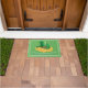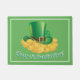 Doormat mostrado con un fondo de color verde y borde blanco con una impresión de Happy St Patrick's Day. Colores: Personalizar verde este artículo o compra tal cual.