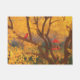 En un arce amarillo vivo percas cardinales masculinas, vigilando sobre su compañero en el alimentador próximo del pájaro.