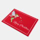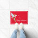 Doormat de vacaciones mostrado con un fondo rojo con una linda huella mágica de hadas. Personalizar esta alfombra o compra como está.