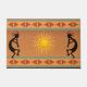 Combinación de colores vivos del Sun Kokopelli Rug Doormat del suroeste de Sun Kokopelli que permite que los colores del fondo sean personalizares y se correspondan con la decoración. Culturas indígenas nativas estadounidenses de Kokopelle. Atribuido a antiguos extraterrestres o arte tribal e inspirado en dibujos de cuevas y rocas. Personalizar tus colores y estilos de alfombra de puerta nativo americano estilo suroeste. Gran idea de regalo.