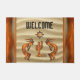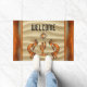 Personaliza este singular Doormat de Kokopelli, al suroeste de Kokopelli, "uno de los tipos"! Cuenta con dos Kokopelli de cobre tocando la flauta y bailando alrededor de un cactus bajo el sol sobre fondo de arena... ¡Rodeado por un borde de cobre!