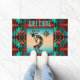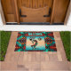 ¡Este es un único "uno de bondad" en el suroeste de Kokopelli Doormat! Cuenta con un Kokopelli que toca la flauta y baila bajo el sol en un fondo turquesa... ¡Rodeado por un borde suroeste en turquesa, Naranja y negro!