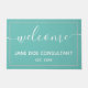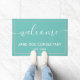 Elegante bienvenida luminosa verde azulada y blanca, negocios o nombre de familia doormat.