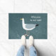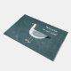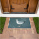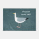 Una gaviota descarada parada junto al océano. Ideal para los amantes de los pájaros y de la costa. El texto lee Bienvenido a nuestro nido, pero puede ser personalizado o eliminado.