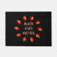 Personalice o quite fácilmente el texto en esta estera de puerta inspirada por los tiroteos trágicos de la gente joven negra de la policía. Ofrece un modelo abstracto del oro, rojo y negro con el texto: Materia negra de las vidas. Todos pacífico trabajemos para la justicia en nuestras comunidades.