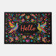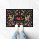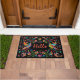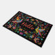 Personalice y dé la bienvenida a esta invitada única con este Doormat mexicano-otomí "One of a Kind". Impresión otomí mexicana con pájaros y flores en vivos colores vivos y vivos...en un fondo negro!