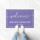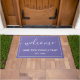 Elegante perwinkle & white de bienvenida, negocios o doormat de nombre familiar.