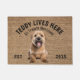 Wheaten Terrier Personalized Dog lover bienvenido doormat. Esta alfombra de bienvenida se puede personalizar con el nombre de su perro, el lema también se puede cambiar o se puede usar una imagen de su propio perro (asegúrese de que es transparente). El texto dice: Teddy vive aquí... Todos los tratamientos son bienvenidos Editar el diseño para cambiar el tipo de letra, los colores y el color de fondo. Cuando reemplace la imagen de su perro, utilice una imagen transparente. Hace un regalo maravilloso para un fiesta que hace las delicias del hogar, vacaciones, amantes del perro y casi cualquier ocasión.