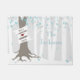 Un doormat del invierno que ofrecía un ilustracion de un bosque nevoso con un árbol con las hojas azules, blancas, y de la plata que tiene bandera envolvió alrededor de tronco. Personalice los nombres.