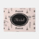 La torre Eiffel, París en tipografía del vintage y etiquetas francesas del vintage para el champán, vino y cacao en negro en suavemente rosa hace una estera y una adición preciosas e interesantes de puerta a su decoración casera, lista para modificar para requisitos particulares con su nombre o mensaje de su opción. Los artículos a juego están disponibles en mi tienda de Zazzle.