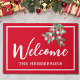 Bienvenido a tu familia y amigos a tu puerta, este Navidad con este felpudo. Está decorado con mistletos acuáticos de fondo rojo. Personalizable fácil. Utilice la Herramienta de diseño para cambiar el tamaño, estilo o color del texto. Mientras creamos nuestra obra de arte, no encontrarás estas imágenes exactas de otros diseñadores. Acuarela original © Michele Davies.