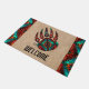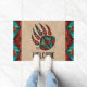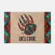 Personaliza este singular "One of a Kind" Tribal Bear Paw Doormat! Cuenta con una ruta de oso tribal del suroeste sobre un fondo de nada... ¡Rodeada por una frontera suroeste en turquesa, Naranja y negro! Este es un diseño de arte original del artista Kerry Miller.