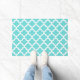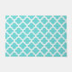 Un audaz diseño en tonos turquesa y blanco decora este elegante edificio. El diseño es de arte original.