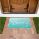 Doormat único, elegante y decorativo de estilo moderno y burgués con adorable texto de citas de Dorm Sweet Dorm, remolinos florales blancos sobre un elegante fondo azul turquesa de color verde agua y azúcares.