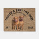 Presentamos nuestro encantador Coir Doormat con dos adorables Dogue de Burdeos sentados uno al lado del otro, listos para darle la bienvenida a usted y a todos sus peludos amigos con patas abiertas! Diseñado con amor y atención a los detalles, este felpudo no es sólo una adición funcional a tu puerta, sino también una extravagante declaración que te dará una sonrisa cada vez que entras en tu casa. Esta alfombra de bienvenida se puede personalizar con el nombre de su perro, el lema también se puede cambiar o se puede usar una imagen de su propio perro (asegúrese de que es transparente). El texto dice: Cooper & Sally Live Here... Todo es bienvenido. Hace un regalo maravilloso para un fiesta que hace las delicias del hogar, vacaciones, amantes del perro y casi cualquier ocasión.