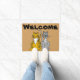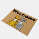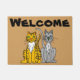 Bienvenidos tus amigos con esta alfombra de bienvenida para dos gatos.