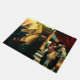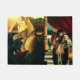 Reina egipcia con dragón rojo en el hombro. La Reina está sosteniendo una órbita de un universo. Un león negro con alas está sobre una montaña con un esfinge detrás.