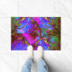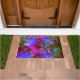 Una felíz alfombra de puerta de colores brillantes con hermosas libélulas coquetas. Puede agregar texto o números para que sea correcto.