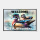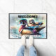 Un par de patos de madera se realizan en un bonito ilustracion acuático.