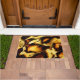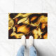 Estampado con tonos naranjas amarillentos y partes negras que parecen algo quemado, con rastros curvos que se asemejan a dunas o algún metalizado derrumbado.