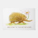 Cute acuarela de la ecidna de arte animal doormat personalizado. Similar a los erizos y a los adornos, estas criaturas superlindas son únicas en Australia. Es común verlos atravesar la calle, pero tal vez no normalmente con una flor... Original acuarela arte de una equidna corriendo para darte una flor de margarita y diseño de Sarah Trett para www.mylittleeden.com