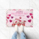 Este bonito doormat El día de San Valentín personalizado presenta un diseño de acuarela rosa y roja. Un ilustracion de un trenecito de San Valentín con gnomos es retratado en la parte inferior. Los corazones severos acentúan la imagen. El borde presenta un sano patrón de guijarros rosados.