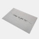 Esta alfombra de bienvenida cuenta con un falso fondo de ladrillo blanco y un elegante guión de caligrafía.