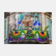 SlipperyJoe's Mardi Gras máscaras abalorios decorativos velocípedos vibrantes balcón telas de color amarillo verde púrpura hombres abrazándose entre sí ambiente festivo viejo edificio paredes templadas persianas LGBTQIA orgullo gay regalos nuevos orleans