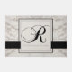 Modelo de mármol de la mirada con la estera de puerta elegante negra del monograma R con el texto de encargo la familia de Robertson