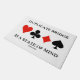 Haz que otros hagan una doble toma con una dosis de doble actitud de puente la próxima vez que uses este felpudo con los cuatro palos de cartas junto con el dicho "Duplicar puente es un estado de ánimo". Doormat memorable para cualquier club de bridge duplicado!