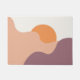 Resumen ilustracion de la colorida puesta de sol detrás de las colinas con sol naranja y colinas onduladas en colores violeta y rosa para todos los que les guste los simples diseños abstractos del paisaje.