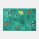 Un diseño moderno de estilo retro de los años 50, con estallidos de sputnik, en un fondo turquesa de formas redondeadas.